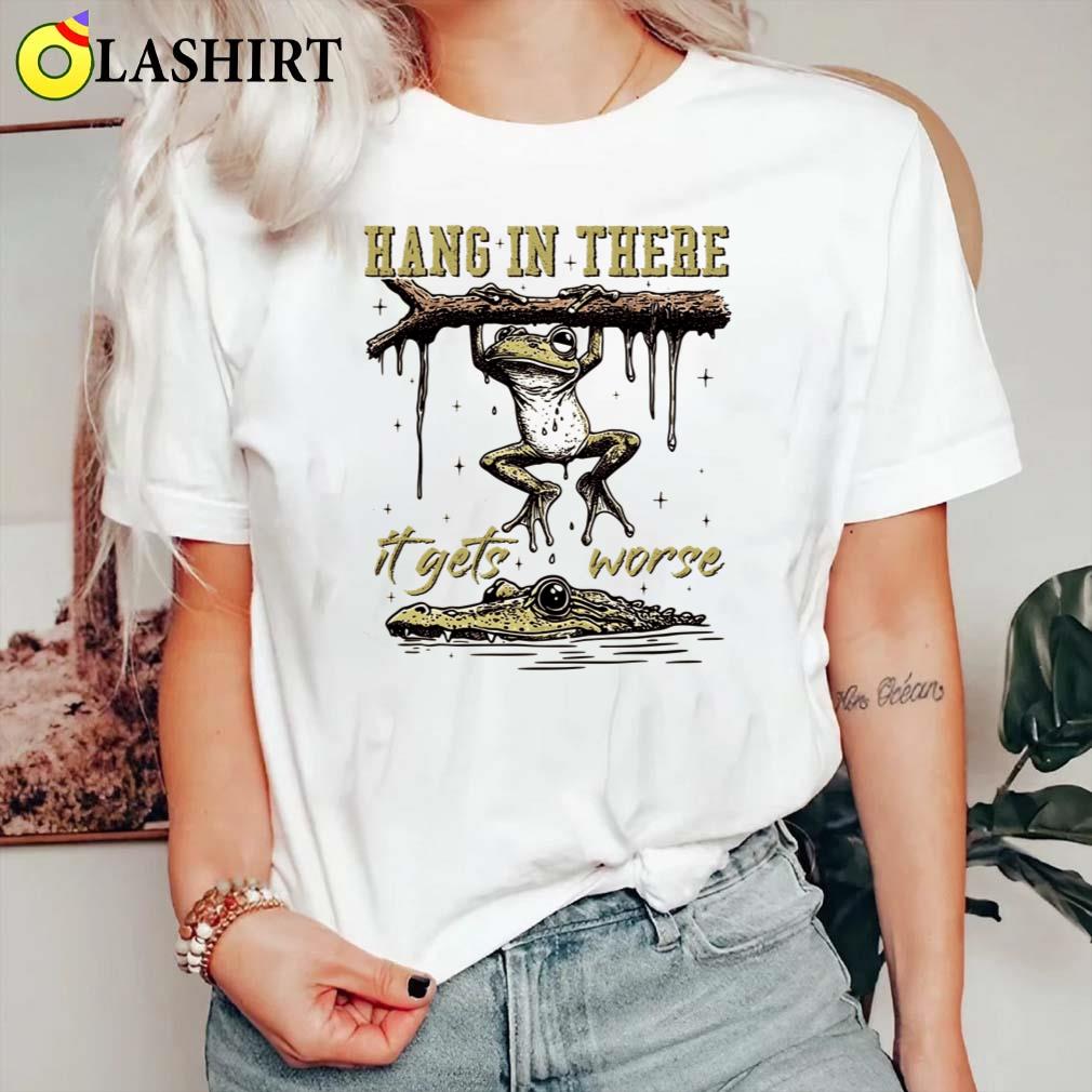 Hang In There It Gets Worse, Funny Sarcastic Frog Shirt