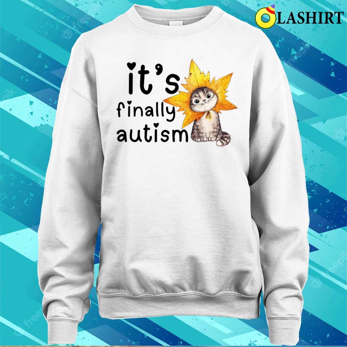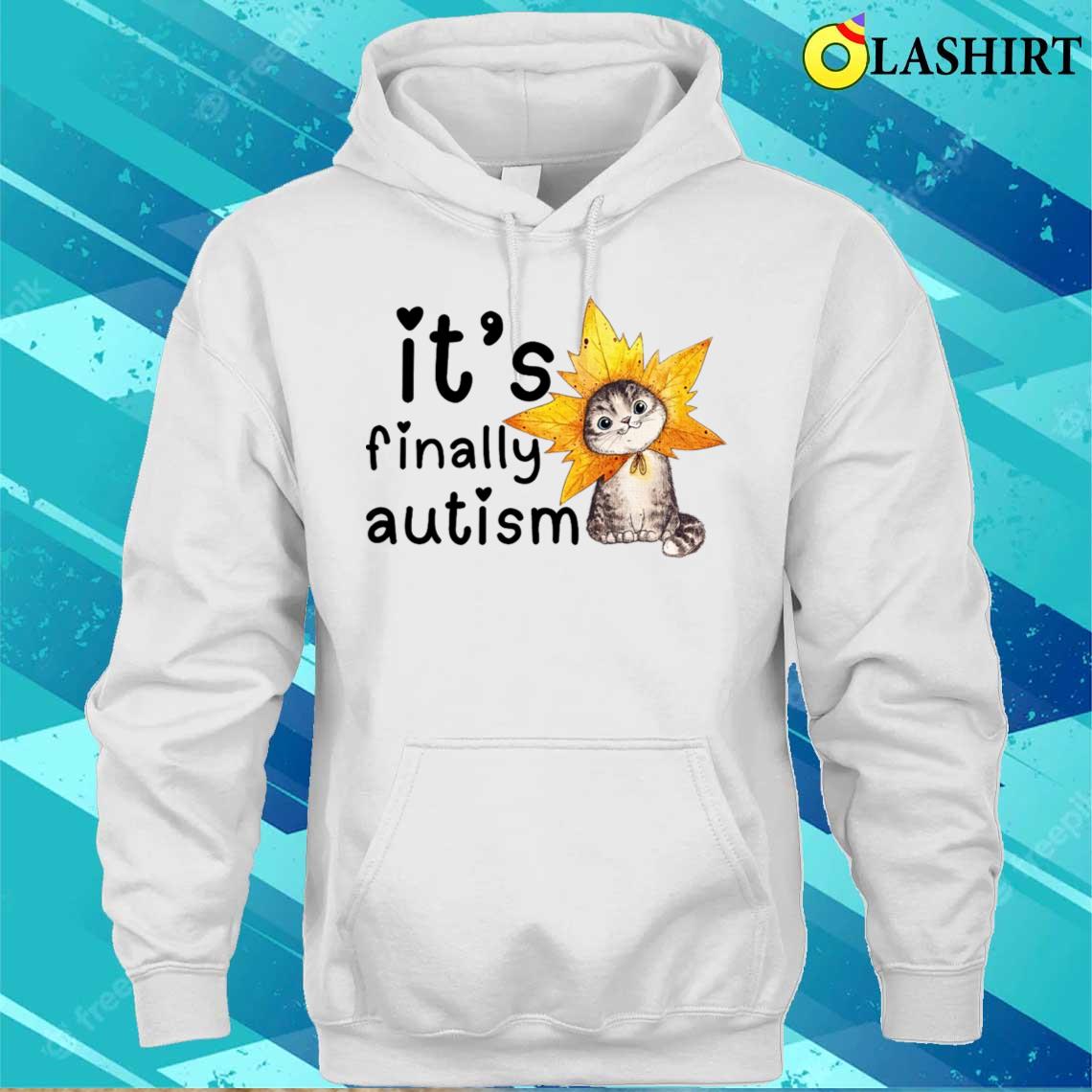 Olashirt is the go-to place for anyone looking to realize their creative ideas on quality fabrics. We value any expression, whether it’s with your own designs or those made available. T-shirts, sweaters, bags, aprons, and a lot more can easily be personalized with images and custom text. The It’s Finally Autism Autumn Cat Autumn T-shirt is what we do as you can see. You can order it from this site. Thank you for your attention.