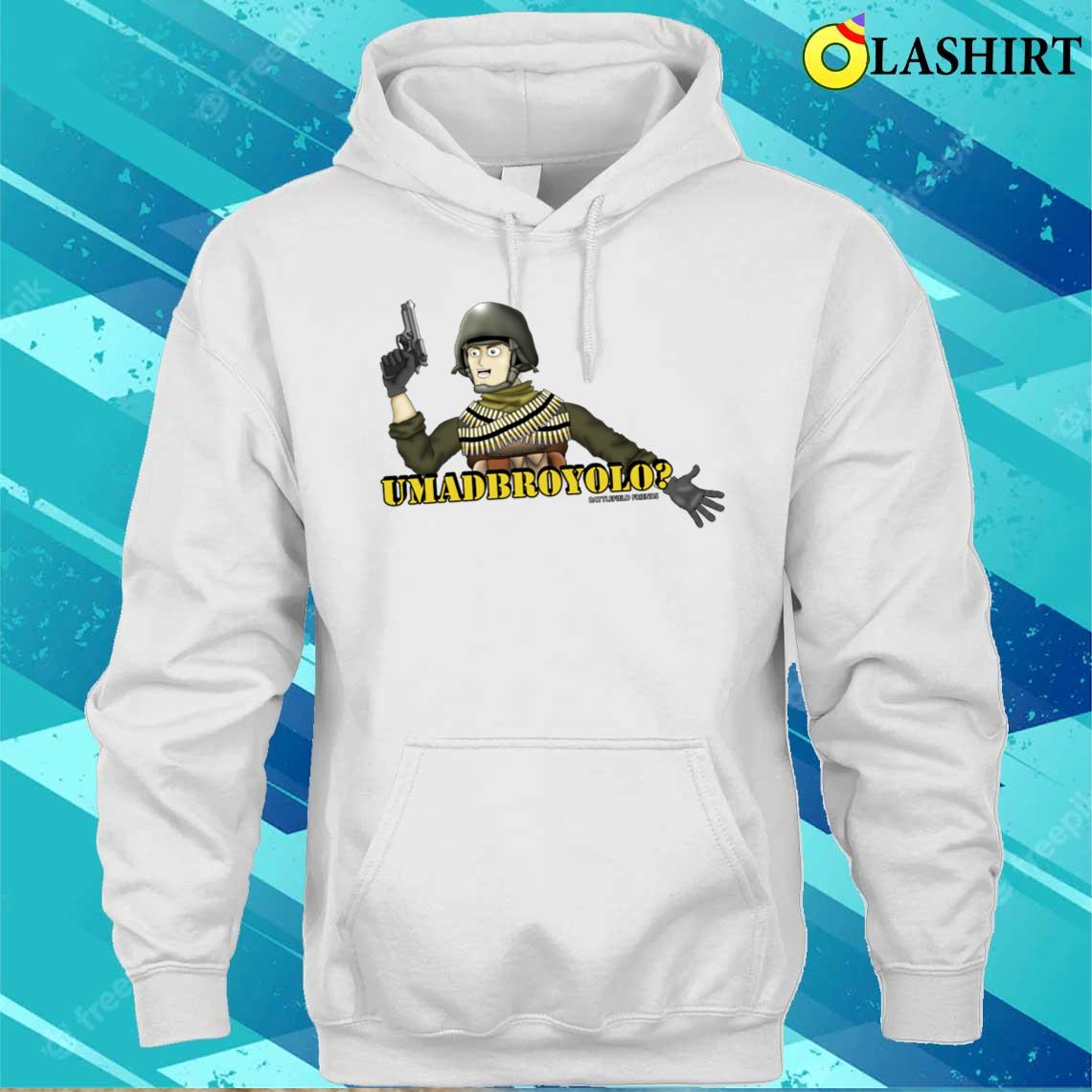 Olashirt is the go-to place for anyone looking to realize their creative ideas on quality fabrics. We value any expression, whether it’s with your own designs or those made available. T-shirts, sweaters, bags, aprons, and a lot more can easily be personalized with images and custom text. The U Mad Bro Yolo Hank is what we do as you can see. You can order it from this site. Thank you for your attention.