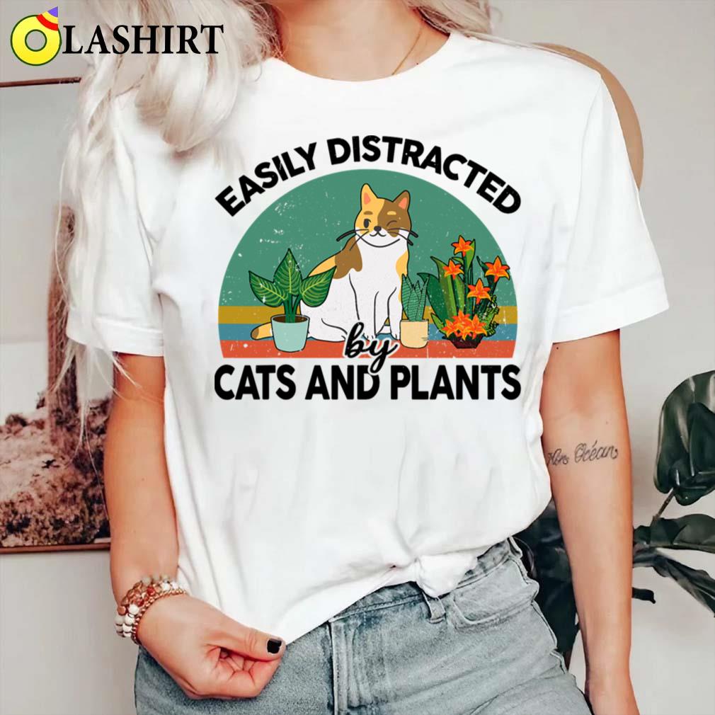 Easily Distracted By Cats And Plants For Garden Kitten Lover T-shirt